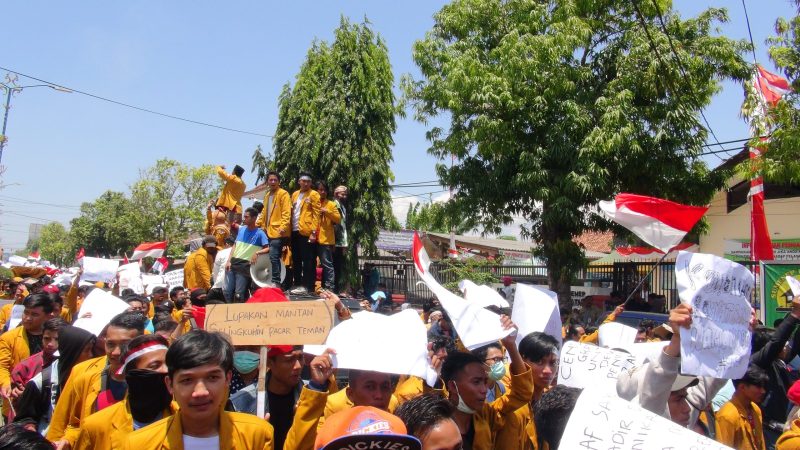 Setelah berjanji mengawal aspirasi yang disampaikan, para mahasiswa akhirnya membubarkan diri dari Gedung DPRD Sumenep. (far/red)