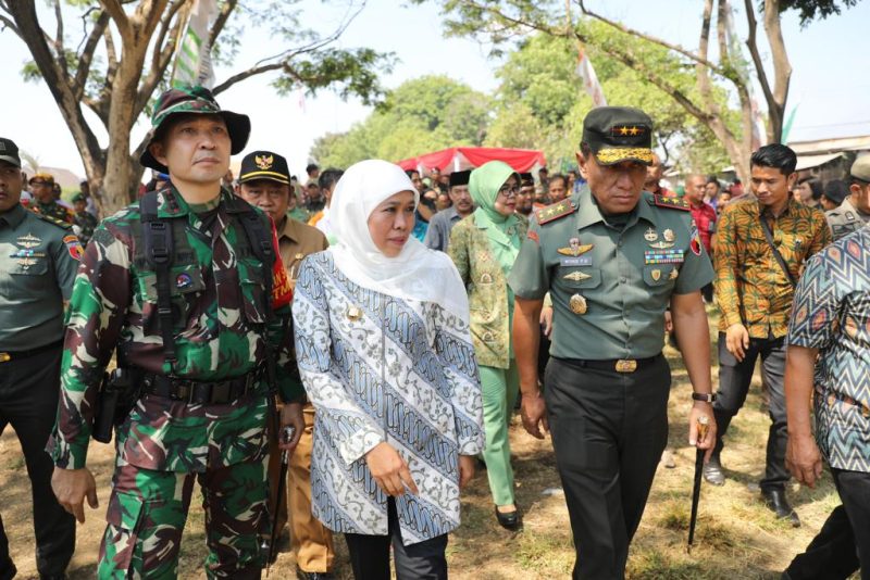 SIDOARJO, seputarjatim.com– Gubernur Jawa Timur Khofifah Indar Parawansa membuka secara resmi pelaksanaan kegiatan TNI Manunggal Membangun Desa (TMMD) ke 106, di Lapangan Kecamatan Jabon, Kabupaten Sidoarjo, Rabu, 02/09/2019. Pembukaan tersebut sekaligus membuka pelaksanaan TMMD di empat kabupaten lain di Jawa Timur, yakni di Kabupaten Ponorogo, Kabupaten Jombang, Kabupaten Malang, Kabupaten Pasuruan dan Kabupaten Sidoarjo.