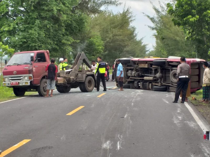 Kejadian laka tunggal Mini Bus Isuzu No Pol.: N 7331 NV tersebut terjadi pada Senin (29/11/2021) sekira 05.30 Wib, yang dikemudikan oleh MOH. YASID (28) asal Desa Jadung, Kecamatan Pragaan dan berpenumpang 4 orang.