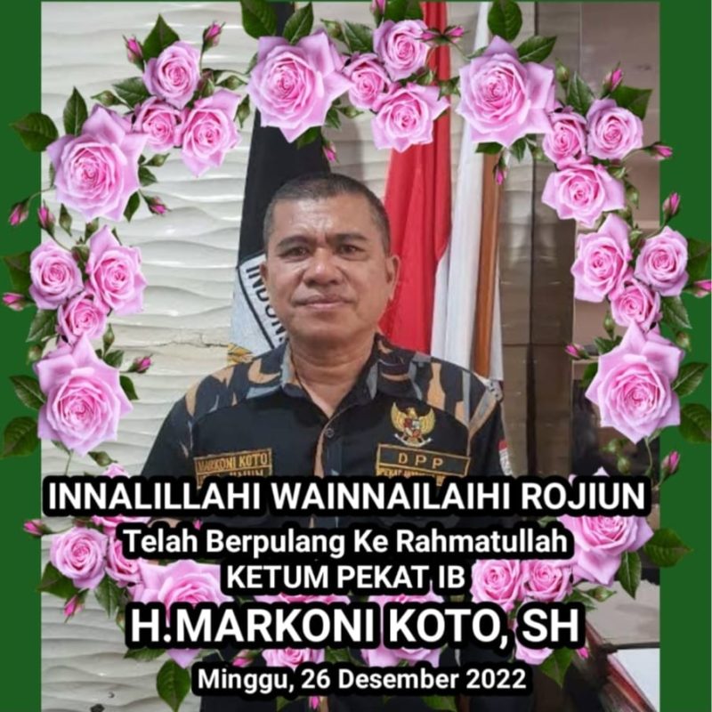 Jakarta,seputarjatim.com–Kabar Duka menyelimuti segenap keluarga besar Organisasi Masyarakat Pembela Kesatuan Tanah Air Indoensia Bersatu (Ormas PEKAT IB) ketika mendapat khabar H.Markoni Koto.SH. Ketua Umum di kabarkan telah meninggal dunia pada pukul 9:30 Wib, Minggu(25/12/2022).