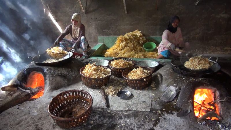 Sumenep, seputarjatim.com- Produksi keripik singkong di Pulau Madura telah dilakukan sejak puluhan tahun lamanya. Di Kabupaten Sumenep, sentra produksi camilan keripik singkong ini berada di Desa Manding, Kecamatan Manding. Pembuatan keripik dimulai dengan memilih bahan baku singkong terbaik dan selanjutnya diiris tipis. Setelah dijemur dan kering, irisan singkong itu lantas digoreng di wajan besar. Dalam perkembangannya, saat ini penjualan camilan keripik singkong telah mencapai seluruh wilayah di Jawa Timur. (gia/red)