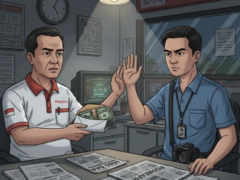 “Jurnalisme tidak bisa dibungkam dengan uang. Praktik seperti itu bertentangan dengan nilai profesionalisme dan jelas melanggar kode etik jurnalistik,” tegasnya.