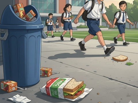 Alih-alih menunjang pemenuhan gizi anak sekolah, makanan program negara itu justru berakhir di tempat sampah.