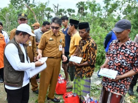 Selain memberikan bantuan kepada korban puting beliung di Desa Karduluk, pemerintah daerah juga menyalurkan bantuan di Desa Pakandangan, Kecamatan Bluto, kepada enam korban bencana yang rumahnya tertimpa pohon.