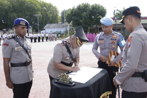 Rangkaian upacara meliputi pengambilan sumpah jabatan, penandatanganan pakta integritas, serta penandatanganan berita acara serah terima jabatan sebagai bentuk komitmen terhadap transparansi dan profesionalisme institusi Polri.