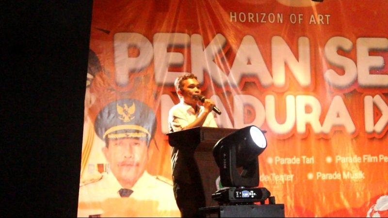 SUMENEP, Seputar Jatim – Pekan Seni Madura (PSM) Ke 9, Unit Kegiatan Mahasiswa Sanggar Lentera STKIP PGRI Sumenep, Madura, Jawa Timur, resmi dibuka oleh Kepala Disbudporapar Sumenep, Mohammad Iksan.