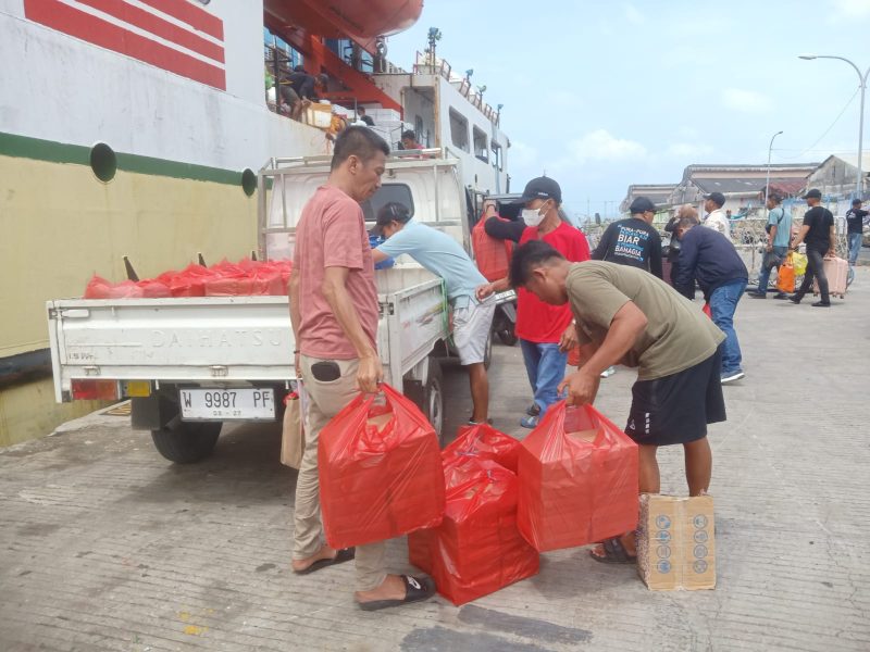 SUMENEP, Seputar Jatim – Bupati Sumenep, Madura, Jawa Timur, memberikan bekal nasi kotak kepada ratusan masyarakat Pulau Masalembu, yang hendak mudik di Pelabuhan Kalianget.