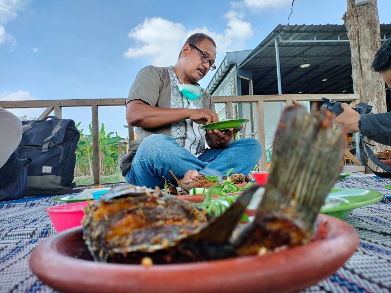 “Awalnya lahan ini gersang, trus kita buat konsep wisata kuliner masakan pedas gurih ikan nila tawar dengan mancing di lokasi dan langsung di santap,” ujar Ismawan.