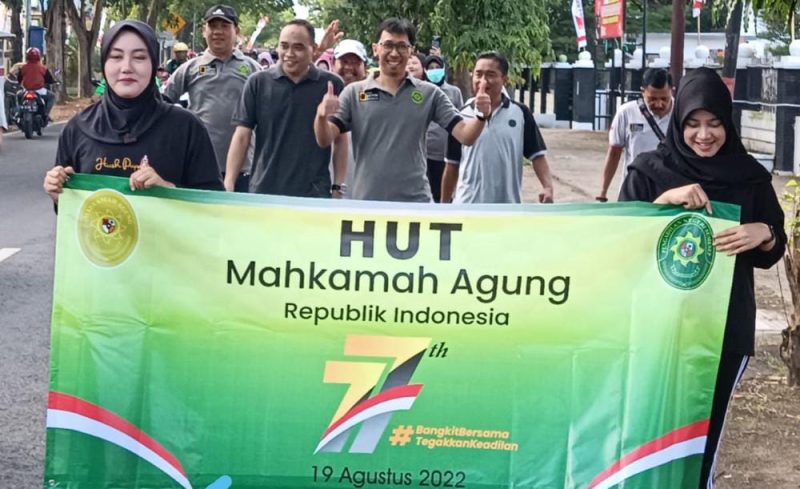 SUMENEP, seputarjatim.com–Menjelang Perayaan Hari Ulang Tahun Mahkamah Agung yang jatuh pada tanggal 19 Agustus 2022 mendatang, Pengadilan Negeri Sumenep, Madura, Jawa Timur, menggelar jalan jalan sehat dan senam bersama.