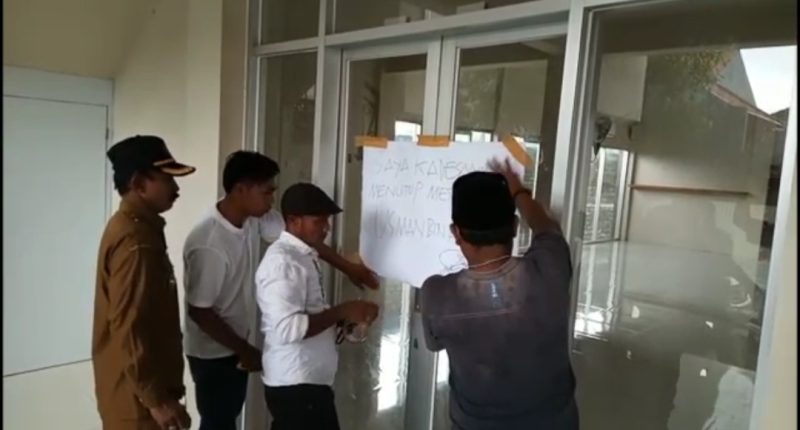 Kepala Desa Nyalabu Laok, Ach Fakhror Rozi, memimpin penutupan masjid tersebut, usai adanya demonstrasi dari ratusan warga desa setempat.