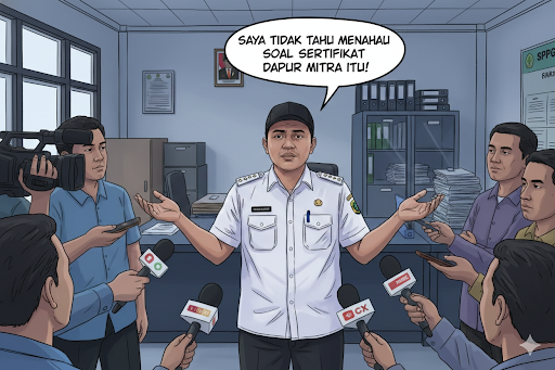 Dalam konfirmasi yang dilakukan media ini, ia secara berulang menegaskan bahwa persoalan kelengkapan persyaratan dan sertifikat dapur mitra ‘di luar tanggung jawabnya’, seraya menyebut perannya hanya sebatas mengingatkan pihak mitra atau yayasan.