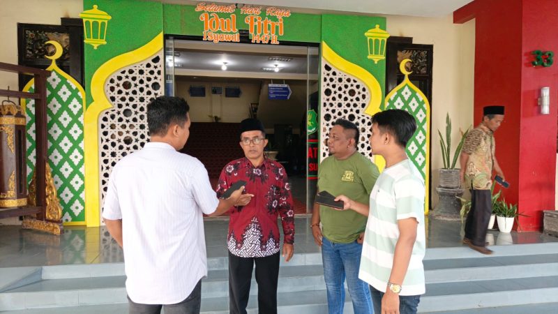TEGAS: Kepala MI Ar Rasyad Desa Kolpo, M. Saleh, saat diwawancarai media usai mengirim surat aduan SPPG Batang Batang Daya ke Satgas MBG yang didamping Ketua IWO Sumenep, Imam Mustain R (kanan) (Mufti Che - Seputar Jatim)