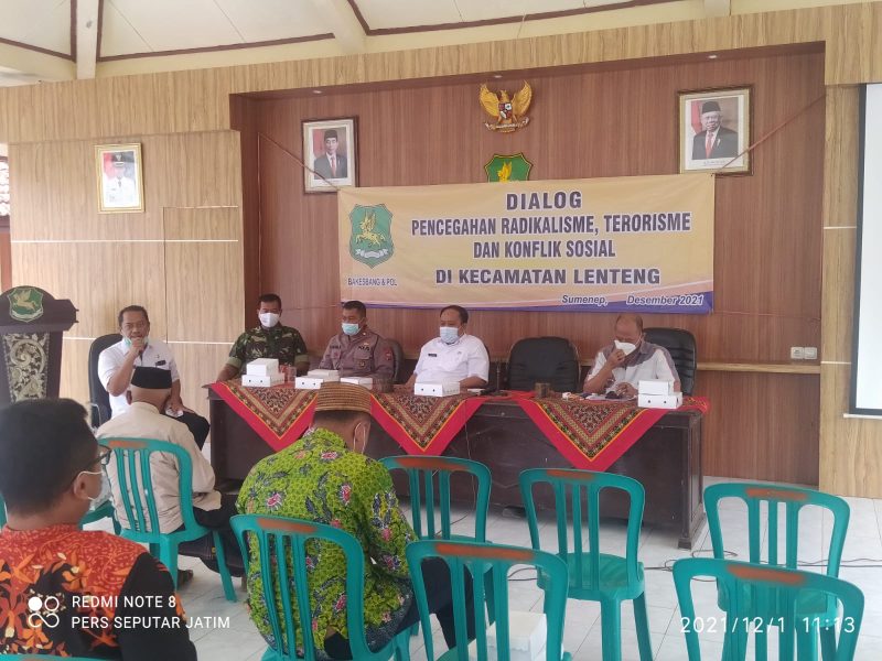 Sumenep,Seputarjatim.com,- Guna mencegah terjadinya radikalisme, terorisme dan konflik sosial ditengah masyarakat, Kantor Kesatuan Bangsa dan Politik (Kesbangpol) Kabupaten Sumenep, Madura menggelar dialog wawasan kebangsaan di pendopo kecamatan lenteng. Rabu (1-12-2021)
